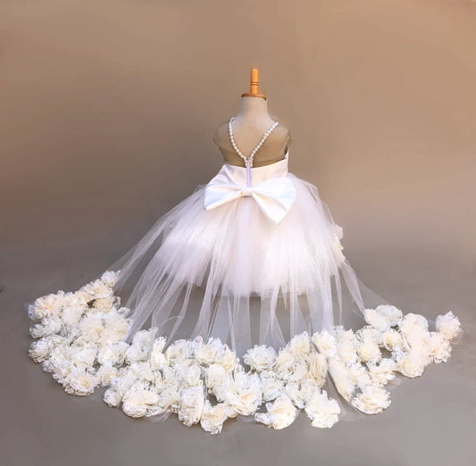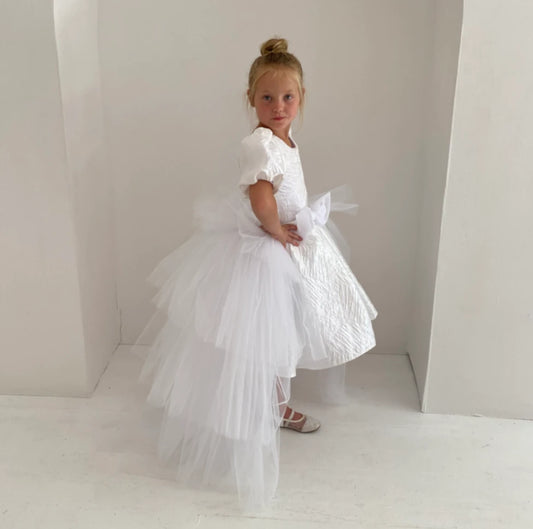 Crystal White Shimmer Dress With Train