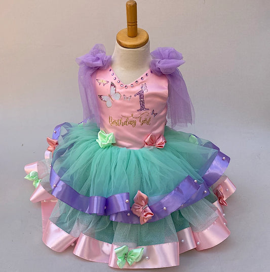 Pastel Butterfly First Birthday Dress
