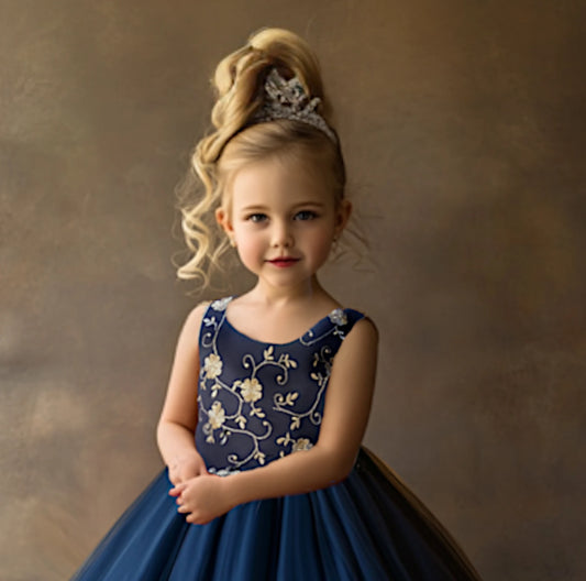 Nikita Navy and Gold Flower Girl Dress