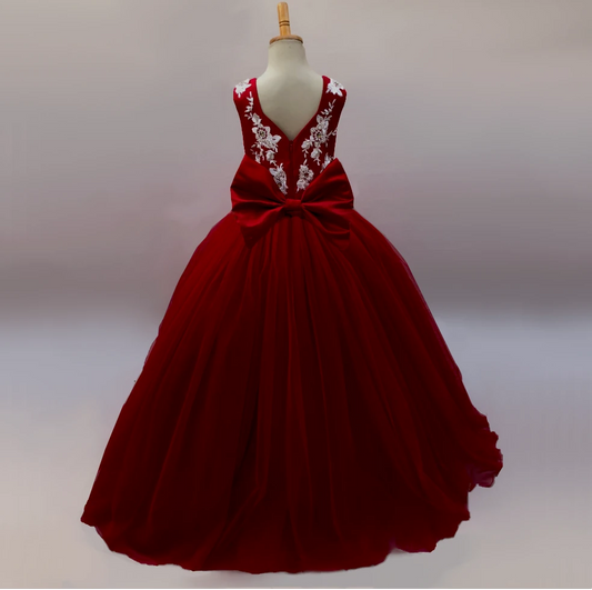 Ruby Red Tulle And Lace Gown
